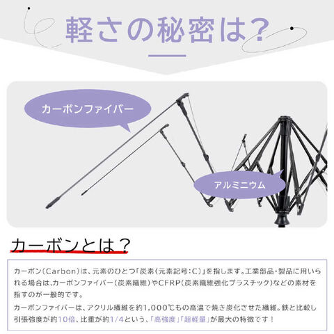 素材:ポリエステル100% 親骨:カーボン、アルミ 中棒:アルミ、スチール