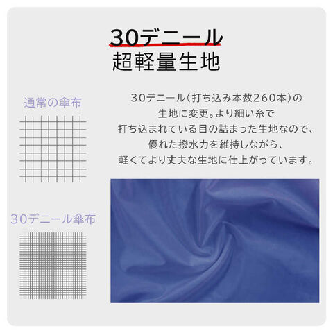 カーボンファイバーと高密度ポリエステル繊維生地の組み合わせで、自動開閉傘でも約240gという軽さを実現しました!一般的な手動式の傘とほぼ同じ重さです。