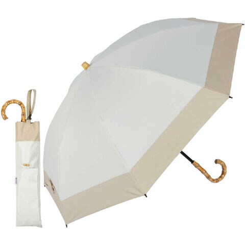 KIZAWA 2段式折りたたみ日傘 nino バイカラー [晴雨兼用傘 /50cm] オフ×ベージュ M50DP-082PO-off-beige
