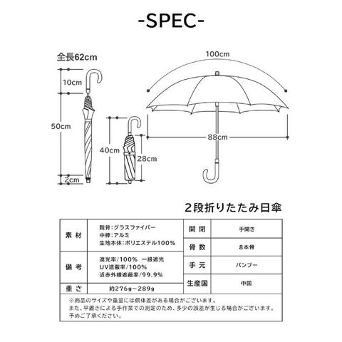 サイズ:全長:66cm 収納時の長さ:40cm 親骨:50cm 直径:88cm