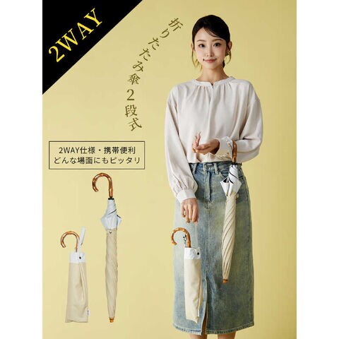 折りたたまずに、伸ばした状態で持ち運べる仕様で、長傘の美しいデザイン性と、折りたたみ時のコンパクトさを兼ね備えた人気のデザインです。