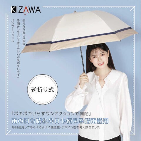 KIZAWA 手動折りたたみ傘 3段式6本骨 逆さ傘 バイカラー [晴雨兼用傘 /55cm] オフ×グレージュ M55DP-063PO-off-greige