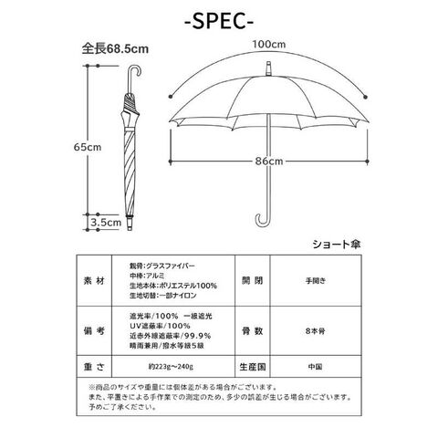 素材:生地本体:ポリエステル100% 親骨:グラスファイバー 中棒:スチール