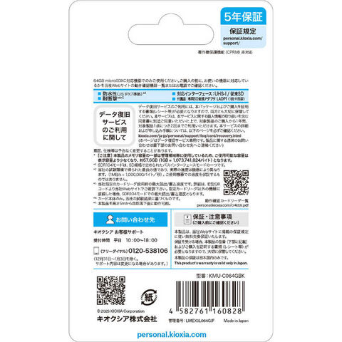 KIOXIA キオクシア (復旧サービス付き)SDXC microSDカード アクションカメラ・スマートフォン・ゲーム機におすすめの高速タイプ EXCERIA(エクセリア) [Class10 / 64GB] KMU-C064GBK