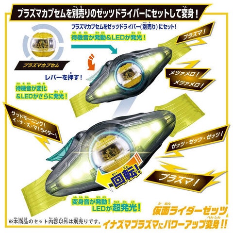 仮面ライダーゼッツ イナズマプラズマのパワーアップ変身に使用する「プラズマカプセム」が付属。