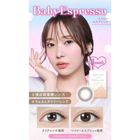 Pia (度あり/-2.25) トパーズ ワンマンス ベイビーエスプレッソ (BC8.6/DIA14.5) 2枚入 カラコン