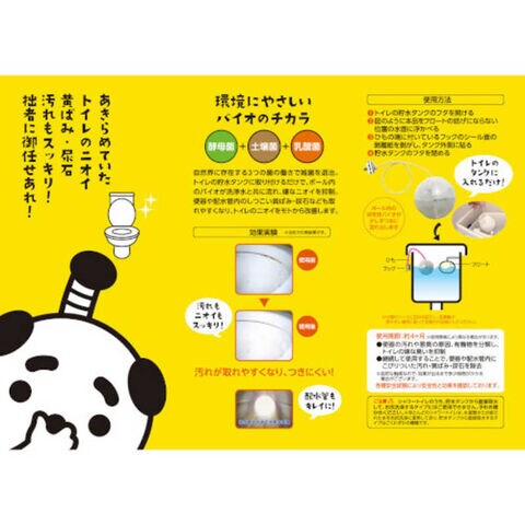 ●トイレの貯水タンクに取り付けるだけで、ボール内のバイオが洗浄水と共に流れ、嫌なニオイを抑制。