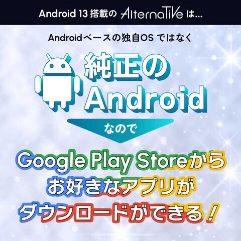 Android 13を搭載し、Google Playのアプリを自由にインストール可能。