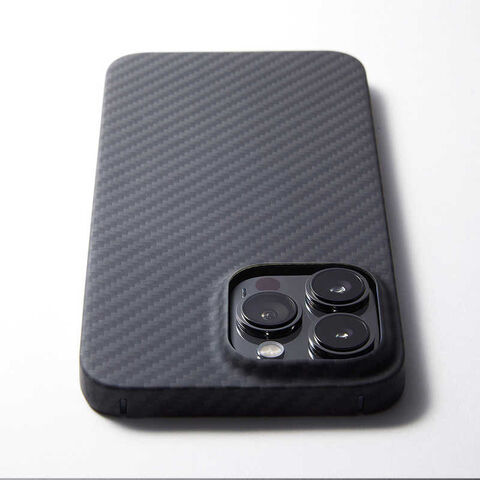 アラミド繊維の特徴を活かしてケースは軽量かつ強靭。さらに、アラミド繊維の織り目や、特殊コーティングにより滑らかで手にしっとり馴染む肌触りも実現。もちろん、5Gを含む通信、通話やモバイルSuicaの使用に影響はありません。