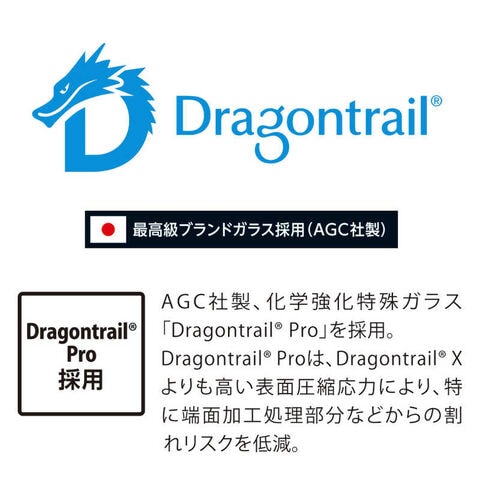●世界最高レベルの強度を持つ化学強化ガラスのAGC社製Dragontrail Pro