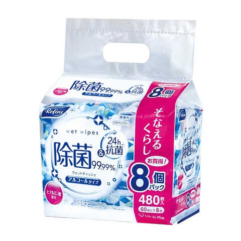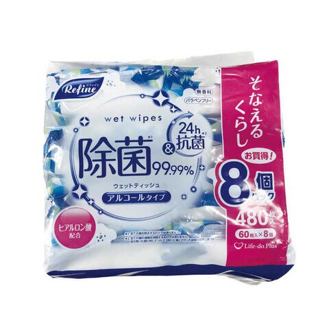 LIFEDOPLUS リファイン アルコール除菌 ウェットティッシュ 60枚 8個入り