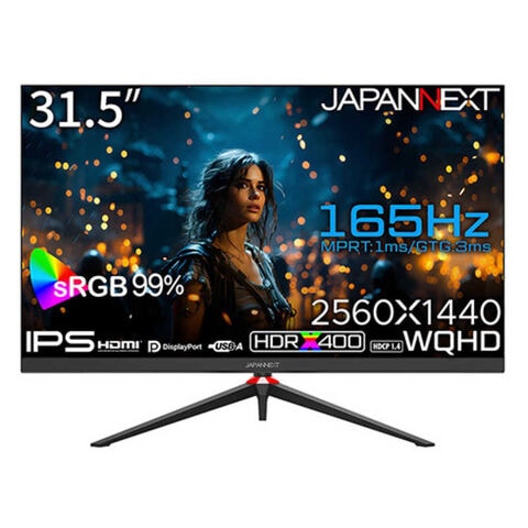 JAPANNEXT 31.5インチ IPSパネル搭載 165Hz対応 WQHD(2560x1440)解像度 ゲーミングモニター JNIPS3152WQHDR165 HDMI DP HDR400相当 sRGB:99% PS5 WQHD:120Hz接続対応