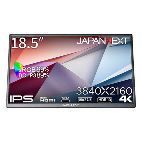 sRGB:99%、DCI-P3:89%の広色域に対応した液晶パネルは、上JAPANNEXT 18.5インチ IPSパネル搭載 4K(3840x2160)解像度 モバイルモニター JNMDIPS185UHDR miniHDMI USB TypeC sRGB:99% DCIP3:89% 自立式キックスタンド搭載 JAPANNEXT特製ポーチ同梱