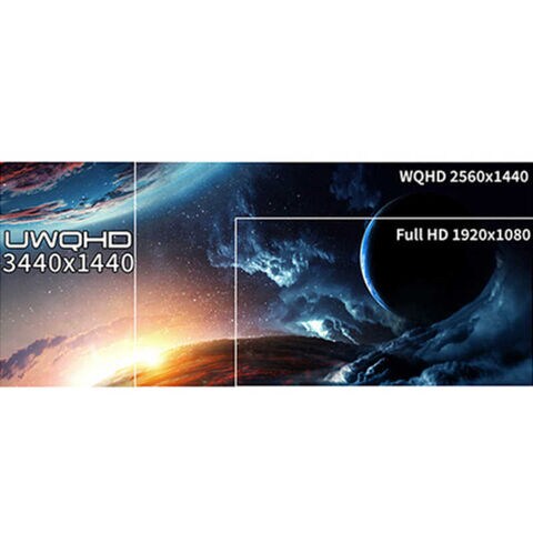 UWQHD(3440x1440)解像度はフルHDの約2.4倍の高解像度を実現、水平解像度はフルHDより80%広く、ゲームプレイ時だけでなく、デスクワークに使用時にも高い生産性を実現できます。