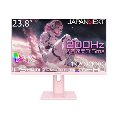 JAPANNEXT IPSパネル搭載 120Hz/0.5ms(MPRT)対応 ゲーミングモニター ケーブル同梱(ホワイト) (2年保証) [23.8型 /フルHD(1920×1080) /ワイド] ピンク JN-IPS238G200F-HSP-PK