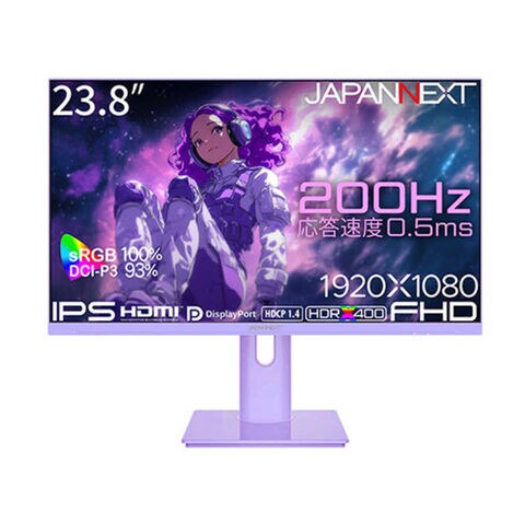 JAPANNEXT IPSパネル搭載 120Hz/0.5ms(MPRT)対応 ゲーミングモニター ケーブル同梱(ホワイト) (2年保証) [23.8型 /フルHD(1920×1080) /ワイド] パープル JN-IPS238G200F-HSP-PP