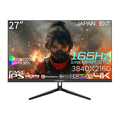 JAPANNEXT ゲーミングモニター FAST IPSパネル搭載 165Hz/1ms(MPRT)対応 HDMI2.1 DP sRGB:100% (2年保証) [27型 / 4K(3840×2160) / ワイド] JN-IPS27G165U