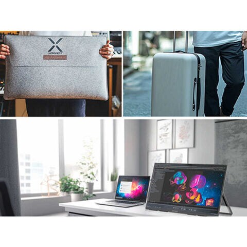 モニター背面にキックスタンドを搭載しているので自立して使用することができ、どこでもデュアルディスプレイ環境の構築が可能です。
