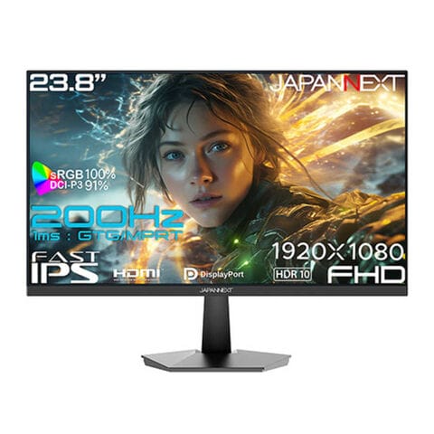 JAPANNEXT ゲーミングモニター FAST IPSパネル搭載 200Hz/1ms(GTG:OD時/MPRT)対応 HDMI DP HDR (2年保証) [23.8型 / フルHD(1920×1080) / ワイド] JN-IPS238G200F2