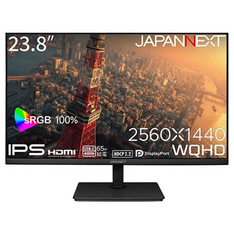 JAPANNEXT 液晶モニター HDMI DisplayPort USB-C(最大65W給電) sRGB:100% (2年保証) [23.8型 / WQHD(2560×1440) / ワイド / 75Hz] JN-IPS238WQHD2-C65W
