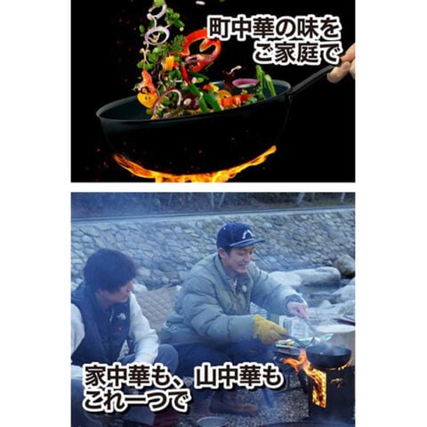 キャンプの醍醐味・焚き火の高火力と頑丈な鉄製マルチパン・人中華鍋SFの相性は抜群!