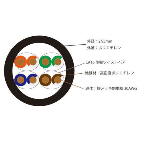 ・AWG30 相当銀メッキ銅単線:LAN 信号の短距離・高周波伝送に最適化
