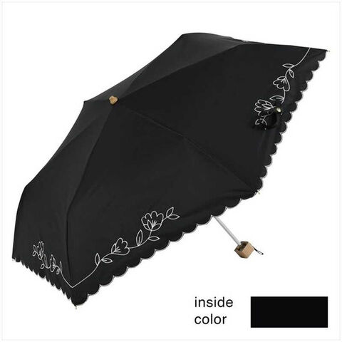 ニフティカラーズ (折りたたみ傘/晴雨兼用) 遮光ミニ 花刺繍 ブラック