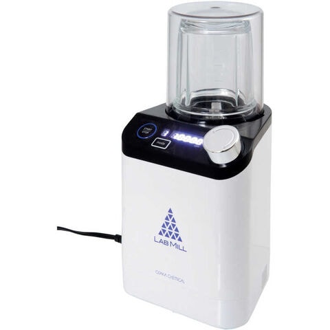 ●錠剤粉砕に適した粉砕機でミルカップ大(ガラス:処理量200ml)、ミルカップ小(ガラス:処理量50ml)、お茶カップ(AS樹脂:処理量約12g)が標準付属し、