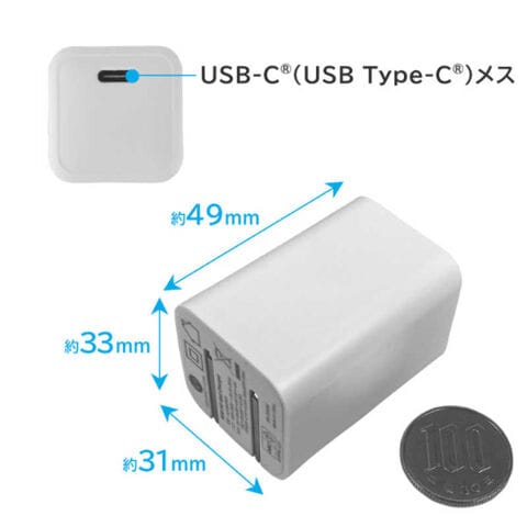 仕様2:[動作保証環境]0~25°C、湿度:~85%(ただし結露なきこと)[本体重量]77g[外径寸法](W)49mm×(D)31mm×(H)33mm ※コンセントプラグ収納時[筺体材質]プラスチック[コンセントプラグ仕様]90度スイング構造[過熱保護回路]搭載[各種取得/対応規格]電気用品安全法(ACアダプター)、PD3.0