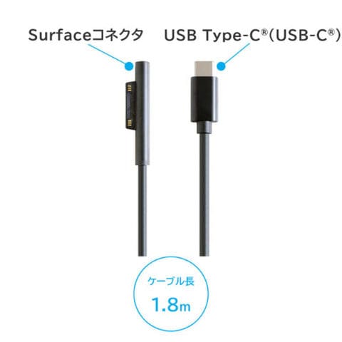 GP-TCS65W18/Bは、Surfaceの急速充電(最大65W)に対応した充電ケーブルです。