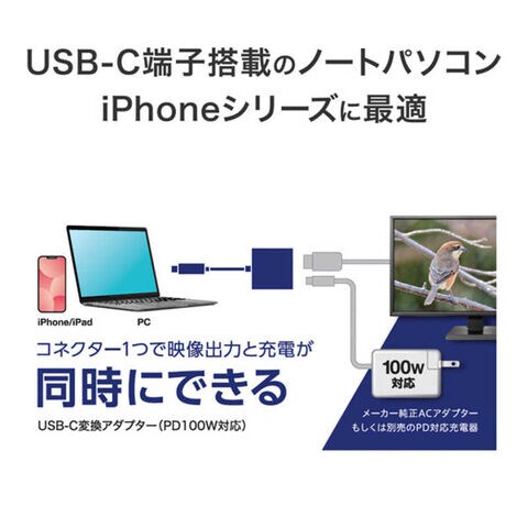 映像出力と同時に充電も可能なUSB-C端子搭載の変換アダプターです。
