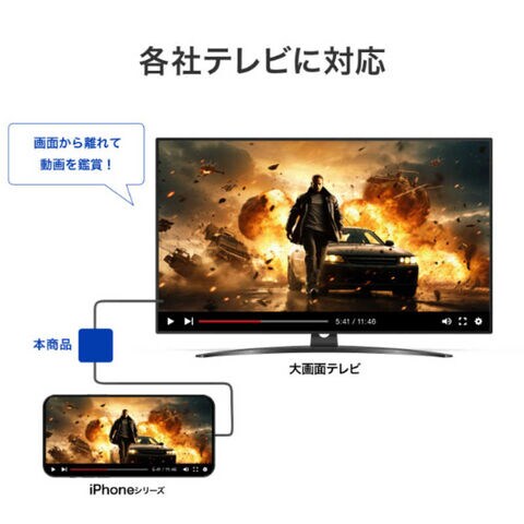 iPhoneシリーズ(16eを除く)、iPad Air、iPad Proの画面をテレビに出力でき、動画鑑賞を大画面のテレビで快適に楽しむことができます。