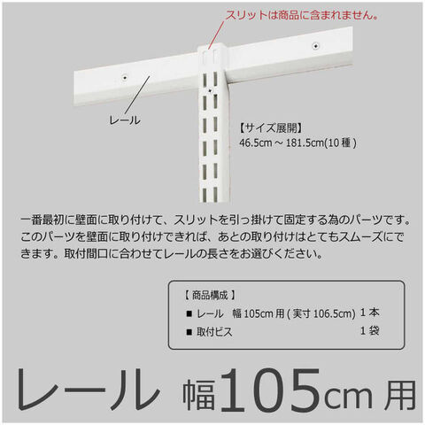 仕様3:・本体サイズ: W1065mm・製品重量: 1.1kg・カラー: ホワイト・梱包内容: 1.レール幅105cm用(実寸106.5cm) 1本 2.取付ビス 1袋