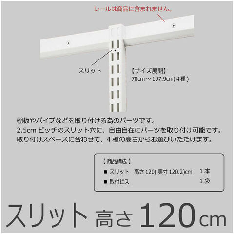 仕様3:・本体サイズ: H1202mm・製品重量: 0.97kg・カラー: ホワイト・仕様: ショートタイプ・梱包内容: 1.スリット 高さ120(実寸120.2)cm 1本 2.取付ビス 1袋