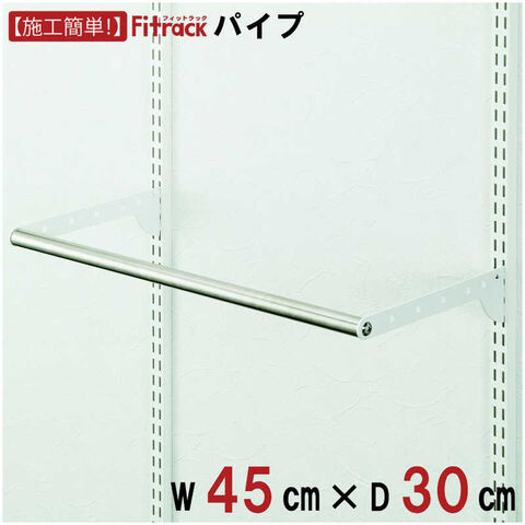 仕様3:・本体サイズ: W450×D300mm・製品重量: 0.85kg・耐荷重: 1セットにつき25kg・カラー: ブラケット: ホワイト・仕様: 金属ブラケット仕様・梱包内容: 1.ブラケット(奥行き30cm用) 2枚 2.パイプ 幅45cm用 1本 3.パイプ用ビス 2個 4.落下防止ストッパー(小) 2個