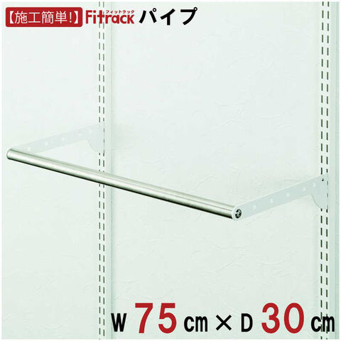 仕様3:・本体サイズ: W750×D300mm・製品重量: 1.1kg・耐荷重: 1セットにつき25kg・カラー: ブラケット: ホワイト・仕様: 金属ブラケット仕様・梱包内容: 1.ブラケット(奥行き30cm用) 2枚 2.パイプ 幅75cm用 1本 3.パイプ用ビス 2個 4.落下防止ストッパー(小) 2個