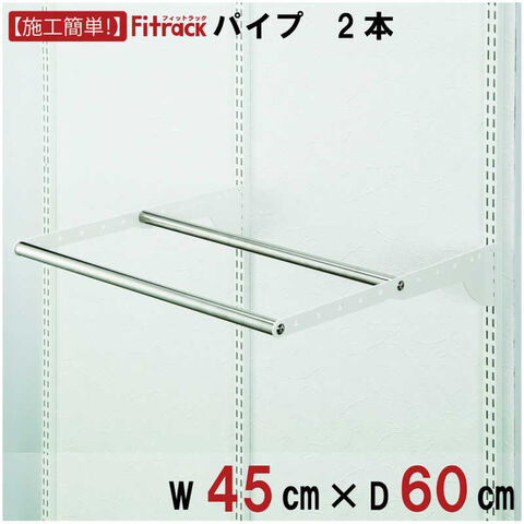 仕様1:・パーツ種類: WPセット(パイプ2本セット)・パーツ種類の説明: パイプの収納パーツです。奥行が60cmで、パイプが2本セットになっています。 ブラケットにあいている、複数の穴のお好きな箇所にパイプを設置していただけます。 手前と奥でかける収納を分けることができます。