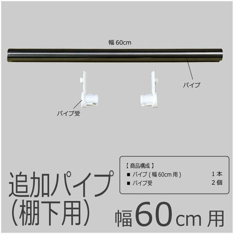 仕様3:・本体サイズ: W600mm・製品重量: 0.4kg・カラー: パイプ受け: ホワイト・梱包内容: 1.パイプ 幅60cm用 1本 2.パイプ受 2個