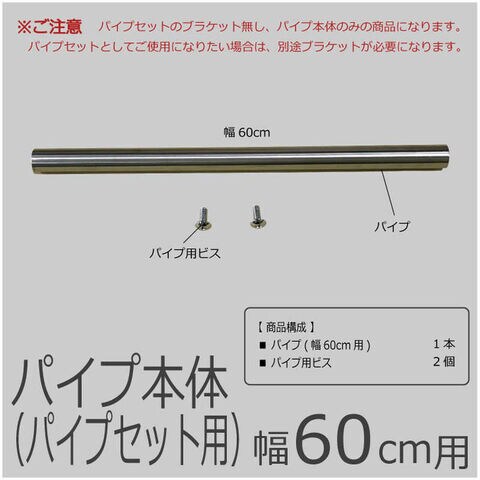 仕様3:・本体サイズ: W600mm・製品重量: 0.35kg・梱包内容: 1.パイプ 幅60cm用 1本 2.パイプ用ビス 2個