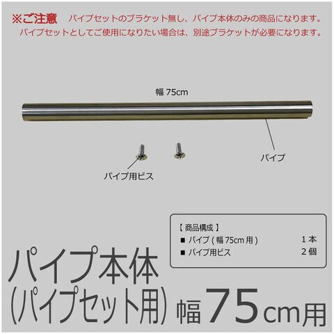 仕様3:・本体サイズ: W750mm・製品重量: 0.4kg・梱包内容: 1.パイプ 幅75cm用 1本 2.パイプ用ビス 2個