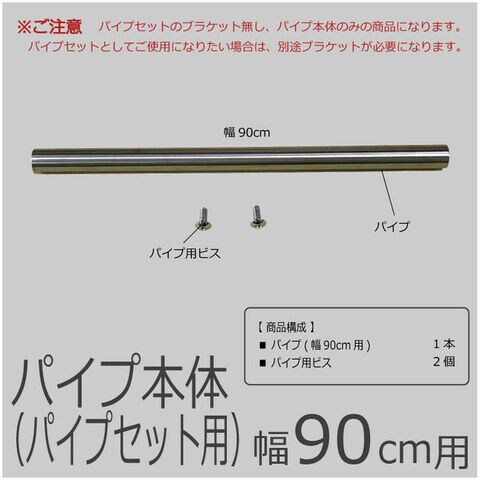 仕様3:・本体サイズ: W900mm・製品重量: 0.5kg・梱包内容: 1.パイプ 幅90cm用 1本 2.パイプ用ビス 2個