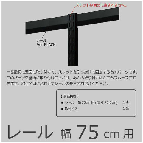 仕様3:・本体サイズ: W765mm・製品重量: 0.8kg・カラー: ブラック・梱包内容: 1.レール幅75cm用(実寸76.5cm) 1本 2.取付ビス 1袋