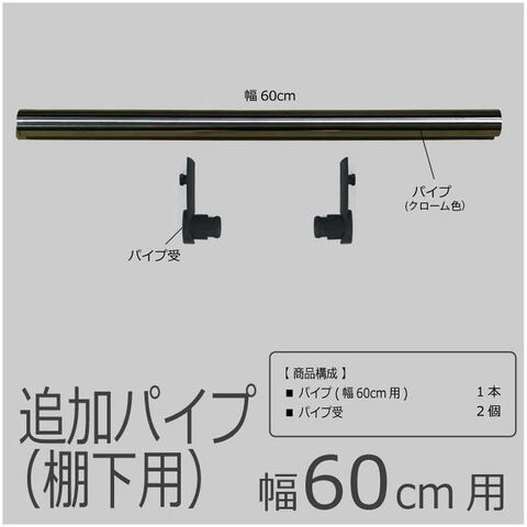 仕様3:・本体サイズ: W600mm・製品重量: 0.4kg・カラー: パイプ受け: ブラック・梱包内容: 1.パイプ 幅60cm用 1本 2.パイプ受 2個