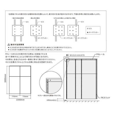 ※化粧板パネルを取り付ける場所の柱の位置によって、取付け方法が変わります。