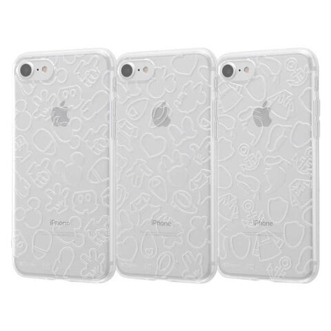 キャラクターのアイコンが散りばめられた可愛いラメ入りケース。