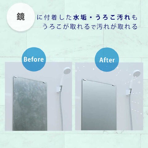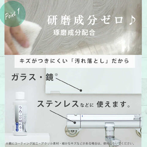 ガラスや鏡などに付着した被膜汚れ、頑固な油膜汚れ、うろこの汚れなどを、簡単に除去します。