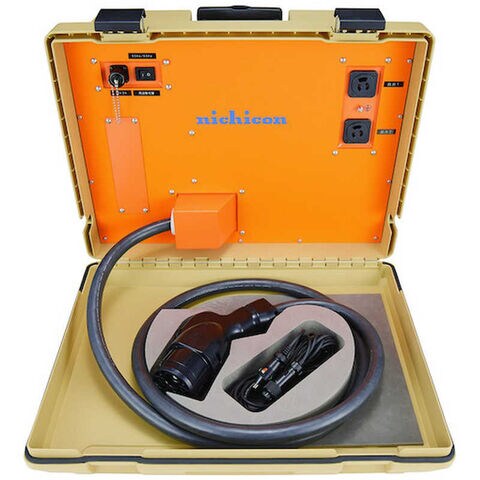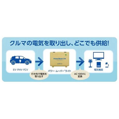 ●電気自動車(EV)の蓄電能力、プラグインハイブリッド 車(PHV)の発電・蓄電能力、燃料電池自動車(FCV)の発電能力を活用し、電気機器に電力供給を行う装置です。