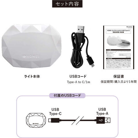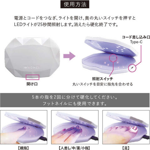 HOMEIウィークリージェルネイル推奨LED ライト(USB-TypeC端子)。