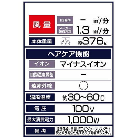 BLDCモーター搭載(次世代ドライヤー):BLDCモーター非搭載