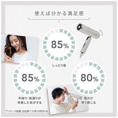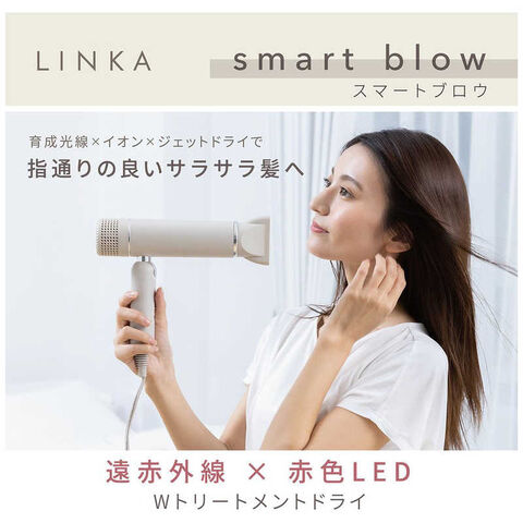 育成光線×イオン×ジェットドライで指通りの良いサラサラ髪へ遠赤外線×赤色LEDでダメージレスドライ!(LINKA smart blow)・3つの独自テクノロジー、育成光線×イオン×ジェットドライで、ダメージレスで指通りの良いサラサラ髪へ。
